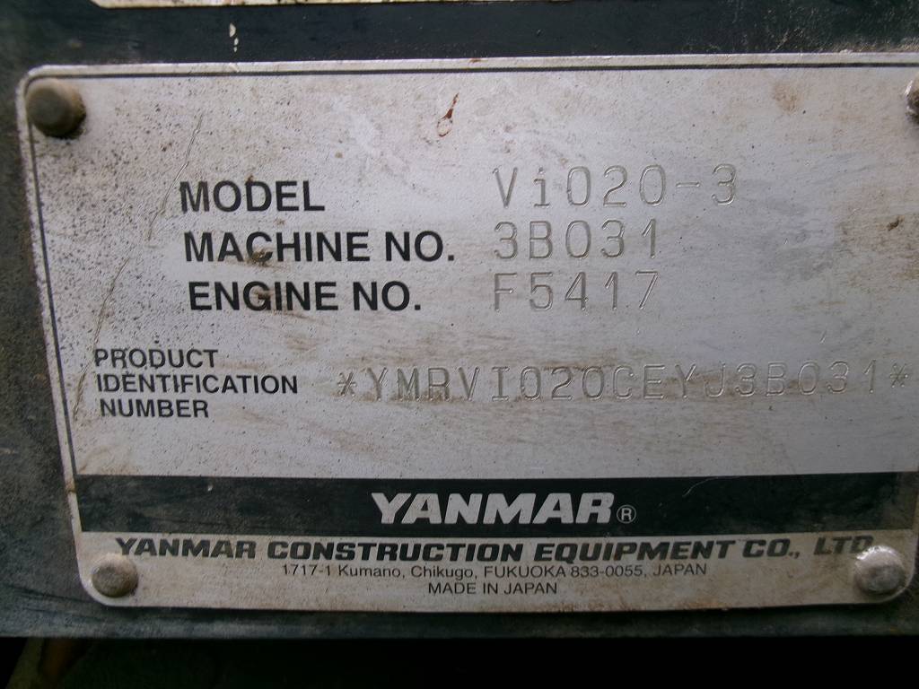 Lot No.G139 YANMAR VIO20-3 S/N:3B031