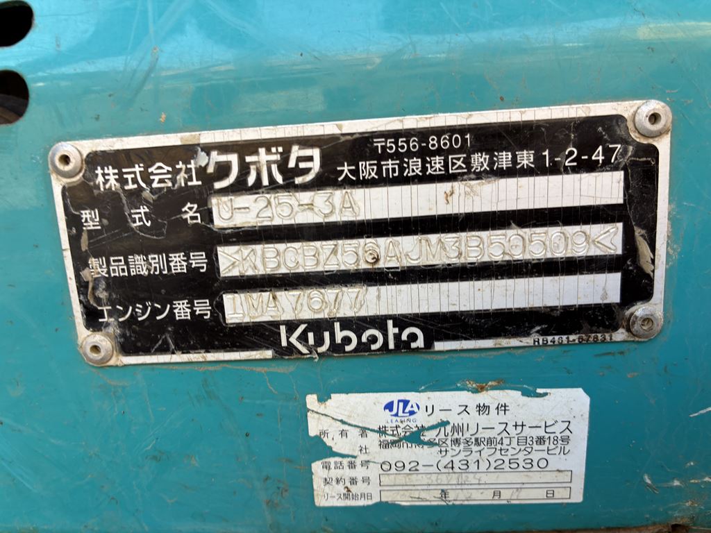 Lot No.H159 KUBOTA U-25-3A S/N:50509