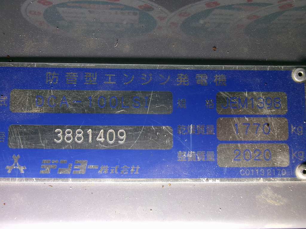 Lot No.H165 DENYO DCA-100LSI S/N:3881409