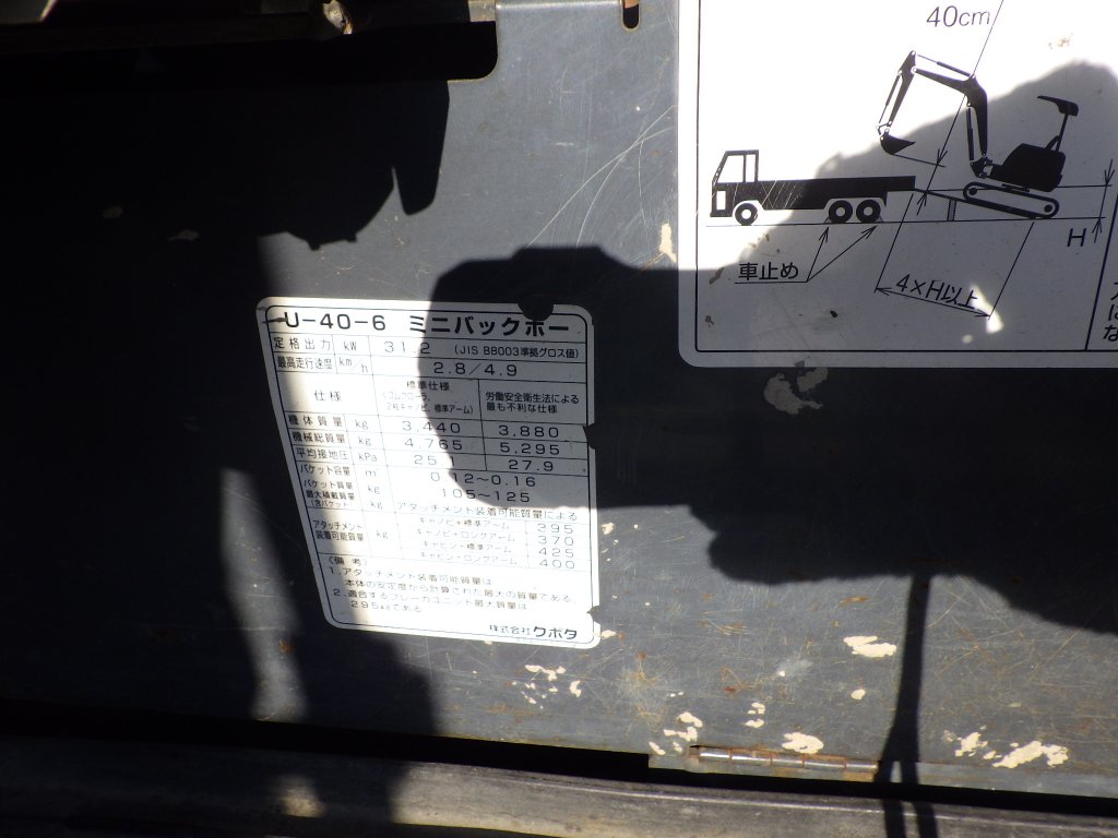 Lot No.D070 KUBOTA U40-6 S/N:13611